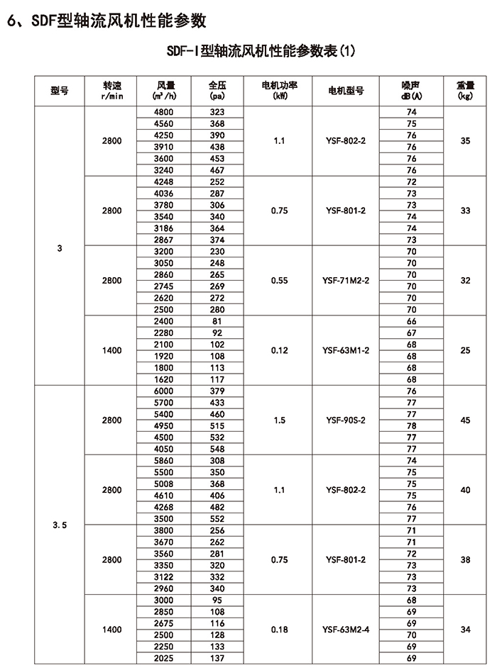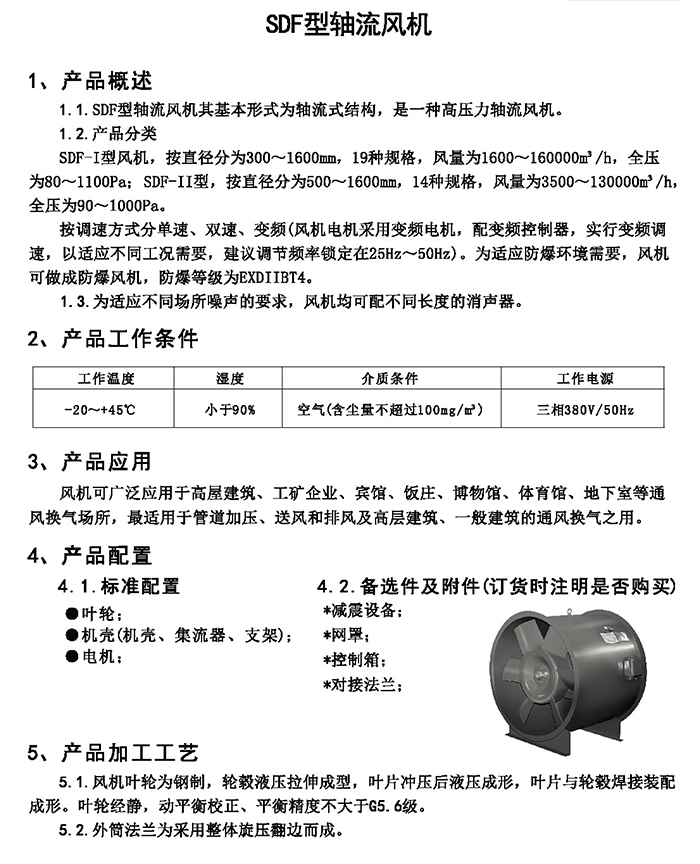 五、SDF 系列加壓軸流風(fēng)機(jī)