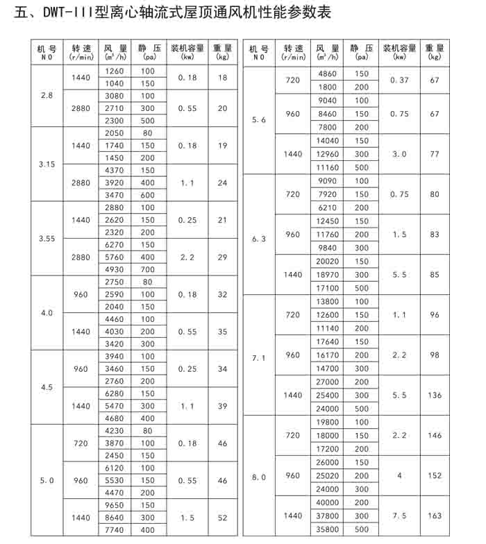二、DWT-II、III 系列離心式屋頂風機